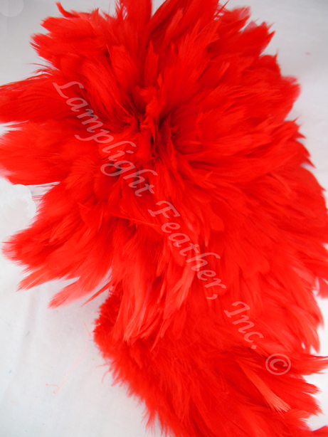 Free Shipping for USA orders over $25. Red Rooster Feathers Short Schlappen 3-5 inch per ounce Schlappen is a type of rooster feather located at the base of the tail. It is a densely sewn together and easy to apply as is with numerous applications in fashion, costume design, crafts, dance outfits, masks, Carnival and Tahitian dance costumes. The feathers are soft and flexible but wider and denser than saddle. Excellent fly tying hackle for steelhead, salmon and other flies where a soft, webby hackle feather is desirable The stem is thinner than coque. This Schlappen is a Natural White dyed into a vibrant color. Feathers are 3-5 inches in length. Price is per ounce. Order two or more (any color) for Free Shipping for USA orders over $25. .